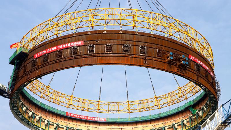 2022年1月14日,漳州核電2號機組核島鋼襯里模塊七吊裝成功,巨力索具為該項目提供牛腿模塊環形吊具、鋼絲繩索具、無接頭繩圈等相關配套索具,全程保障吊裝環節順利進行,吊裝過程質量安全整體受控,實現了鋼襯里筒體、牛腿和次鋼平臺一體化模塊施工,標志著“華龍一號”鋼襯里模塊化施工又有新突破,開創了國內外核電機組鋼襯里全模塊化施工建造的先河。