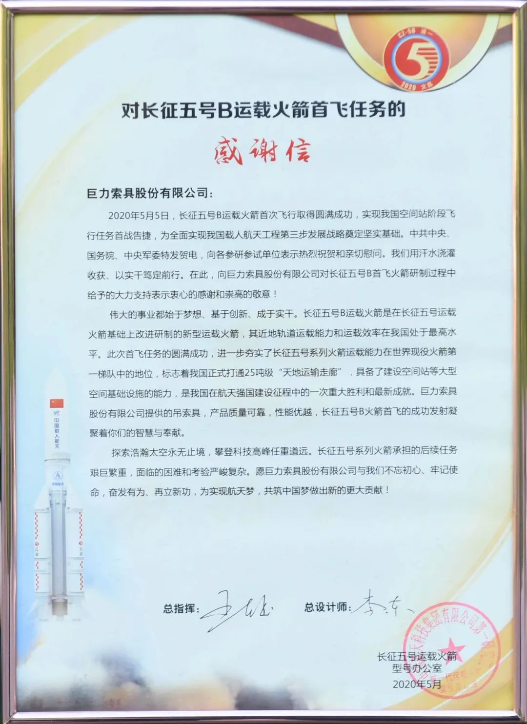 仰望星空又腳踏實地,巨力索具懷揣敬畏與熱愛,將繼續緊隨航天事業發展的腳步!