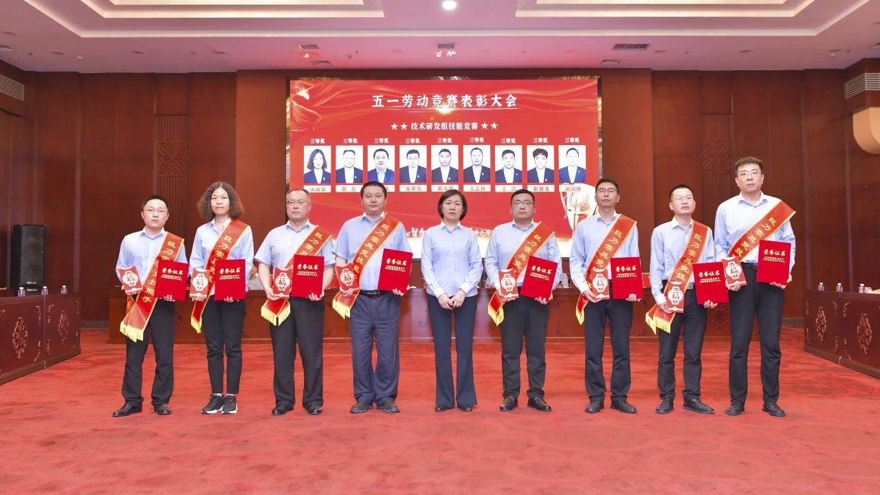會議表彰了榮獲先進工作者、在競賽過程中成績優(yōu)異者,與會領(lǐng)導(dǎo)為獲獎職工頒獎。