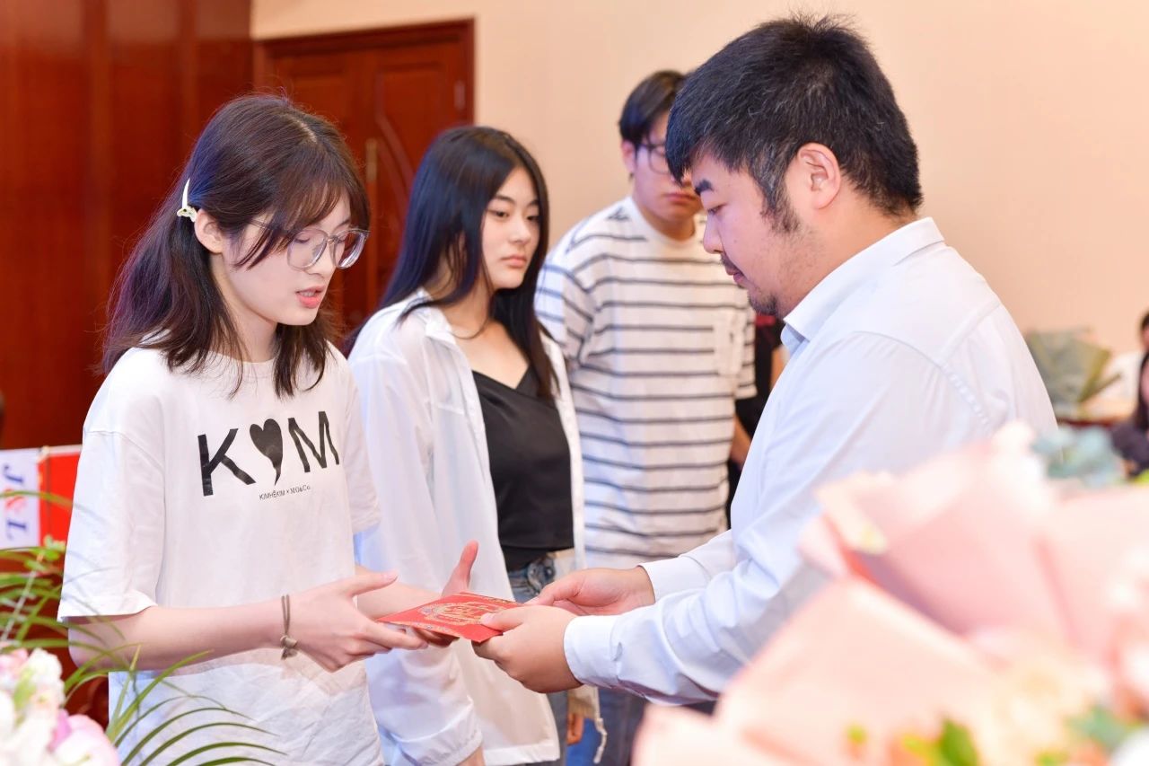 分享會上,楊超向含辛茹苦供子女求學的職工及家屬表示崇高的敬意,向金榜題名的職工子女表示熱烈的祝賀,他精心的為每位到場的考生準備了兩份禮物:一本書籍和一份助學金。表達他對考生的美好祝愿。