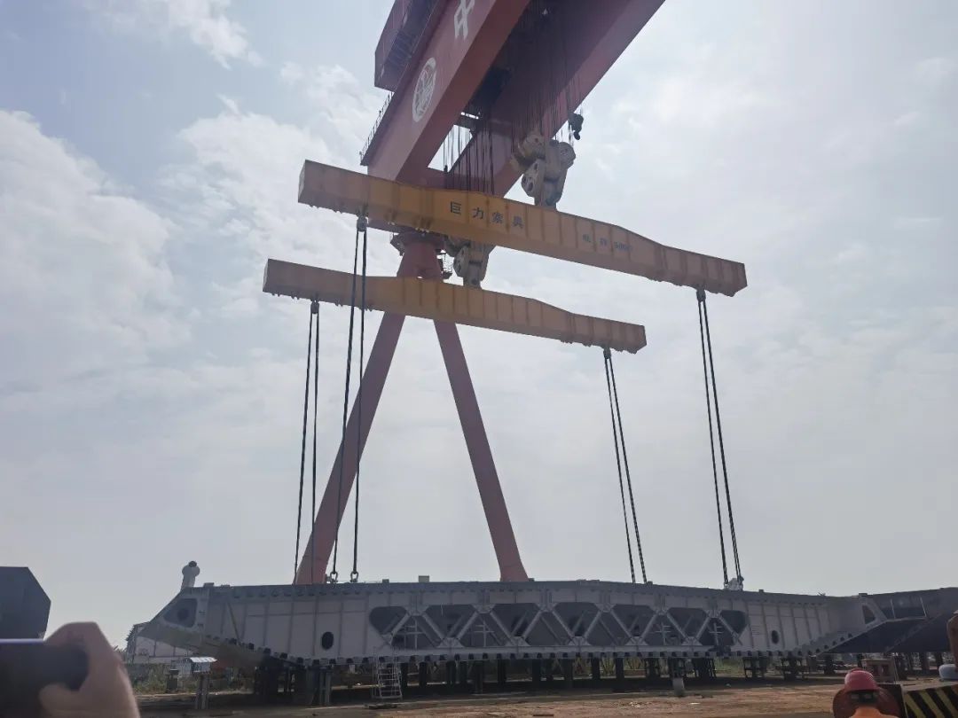 11月19、20日,長133米,寬20米,高4.7米,重1700噸的大型鋼箱梁段運至指定位置,巨力索具研發(fā)制造的鋼箱梁吊具全程保障該項目吊裝順利實施,標志著深中通道G05標段泄洪區(qū)鋼箱梁大節(jié)段XG9L出海平臺在中鐵山橋南方裝備試運行成功。此次成功試運行為深中通道鋼箱梁大節(jié)段順利啟運奠定了堅實基礎。