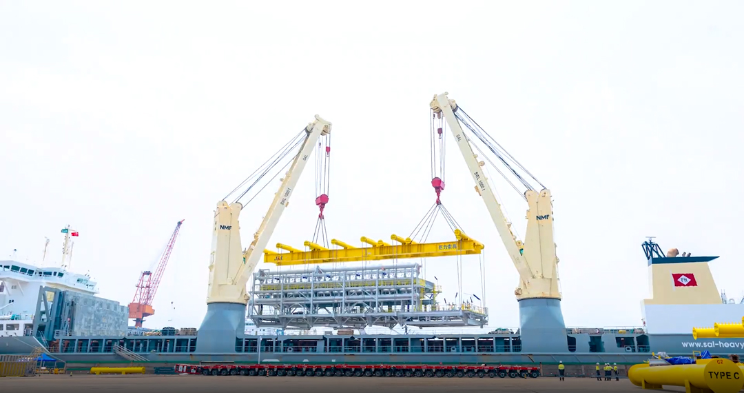 巨力索具主要負責該項目模塊的吊裝,分別提供了額定載荷為600T、300T、690T的吊框,吊裝能力為55T、75T、100T的卸扣及6種不同規格的無接頭繩圈,并提供專業吊裝方案,全程保障模塊吊裝的順利進行。