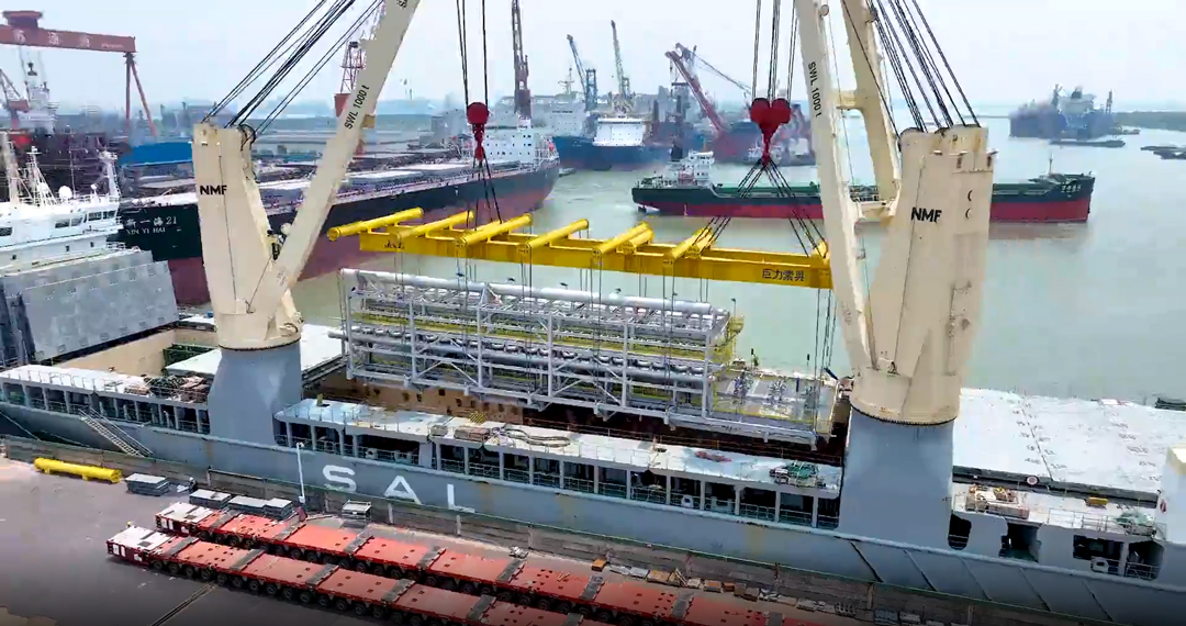 據了解模塊建造由森松(江蘇)重工有限公司承接。其負責人介紹:“根據計劃,我們將建造99個煉油模塊,總重量超過23000噸。這些模塊會通過水運,分批發往伊拉克,并于2023年底交付完成?!?/p>